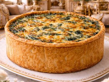 Flaky vegan crust filled with silky sautéed spinach, plant-based Gruyère, and creamy custard. SF-NF