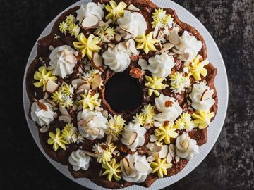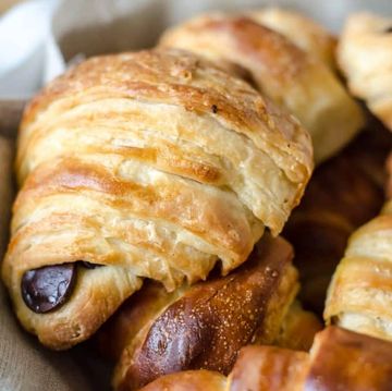 Flaky pastry filled with rich chocolate and hazelnut butter cream. SF