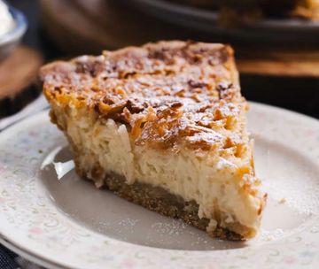 Made with organic coconut cream and pure vanilla extract. The slow-baked filling and flaky crust is topped with toasted coconut. GF. SF-NF