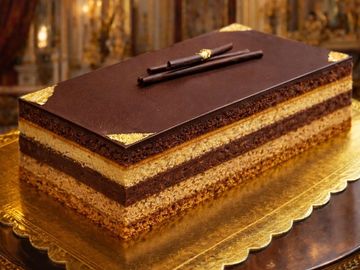 Classic French layered dessert made with almond sponge, coffee buttercream, and dark chocolate ganache. SF-NF